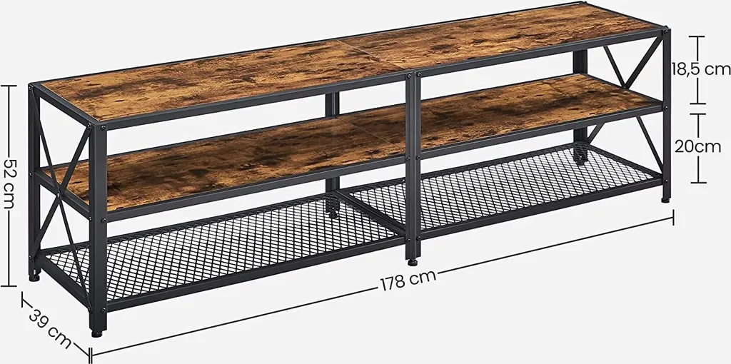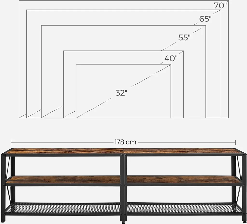 Einen 178 x 39 x 52 cm großen Fernsehtisch, auf dem Fernseher bis zu 70 Zoll aufgestellt werden können. Dieses Möbelstück ist Teil unserer BRYCE-Kollektion. Unser Industrie-Design verleiht Ihrem Raum eine Vintage-Note!