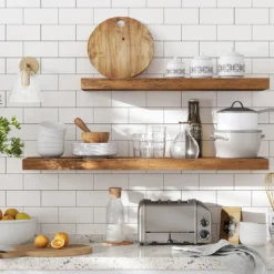 Die rustikale Schwebewand in Braun dient nicht nur zur Aufbewahrung Ihrer Accessoires, sondern ist selbst eine einzigartige Deko in Ihren vier Wänden. Egal ob im Wohnzimmer, Schlafzimmer, Flur oder in der Küche, das Wandboard wird alle Blicke auf sich ziehen