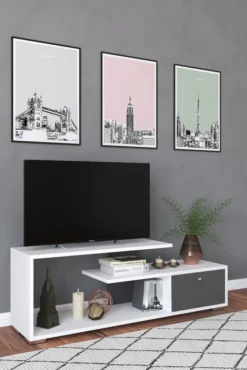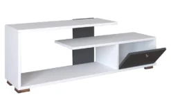 Das TV-Lowboard „Mazusa“ fügt sich durch das schlichte und moderne Design in nahezu jeden Wohnraum harmonisch ein. Der Korpus mit 15mm Stärke sorgt für eine sehr gute Stabilität.