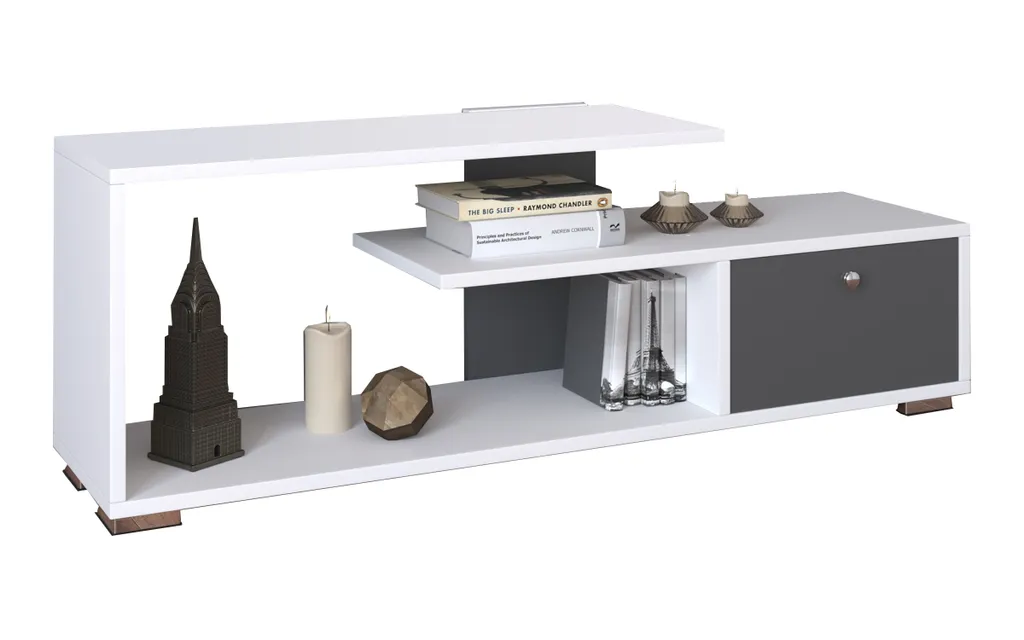 Die großen Stellflächen bieten ausreichend Platz für TV-/ und AV-Geräte. Die leichtgängige Schublade bietet zusätzlichen Stauraum.