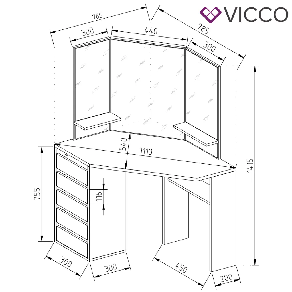 Schminktisch: 110 x 141,5 x 54 cm (BxHxT)