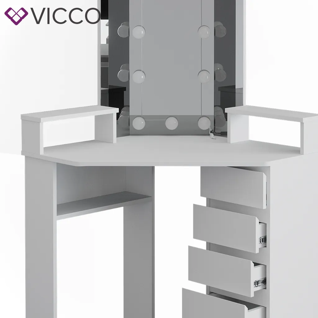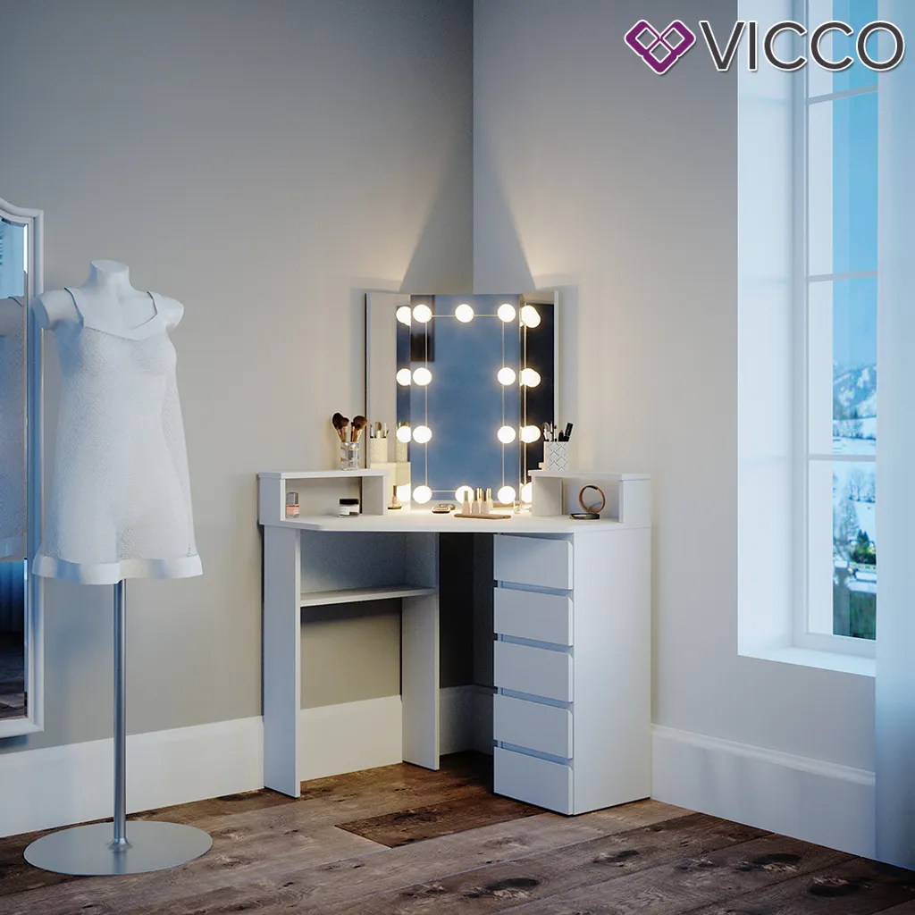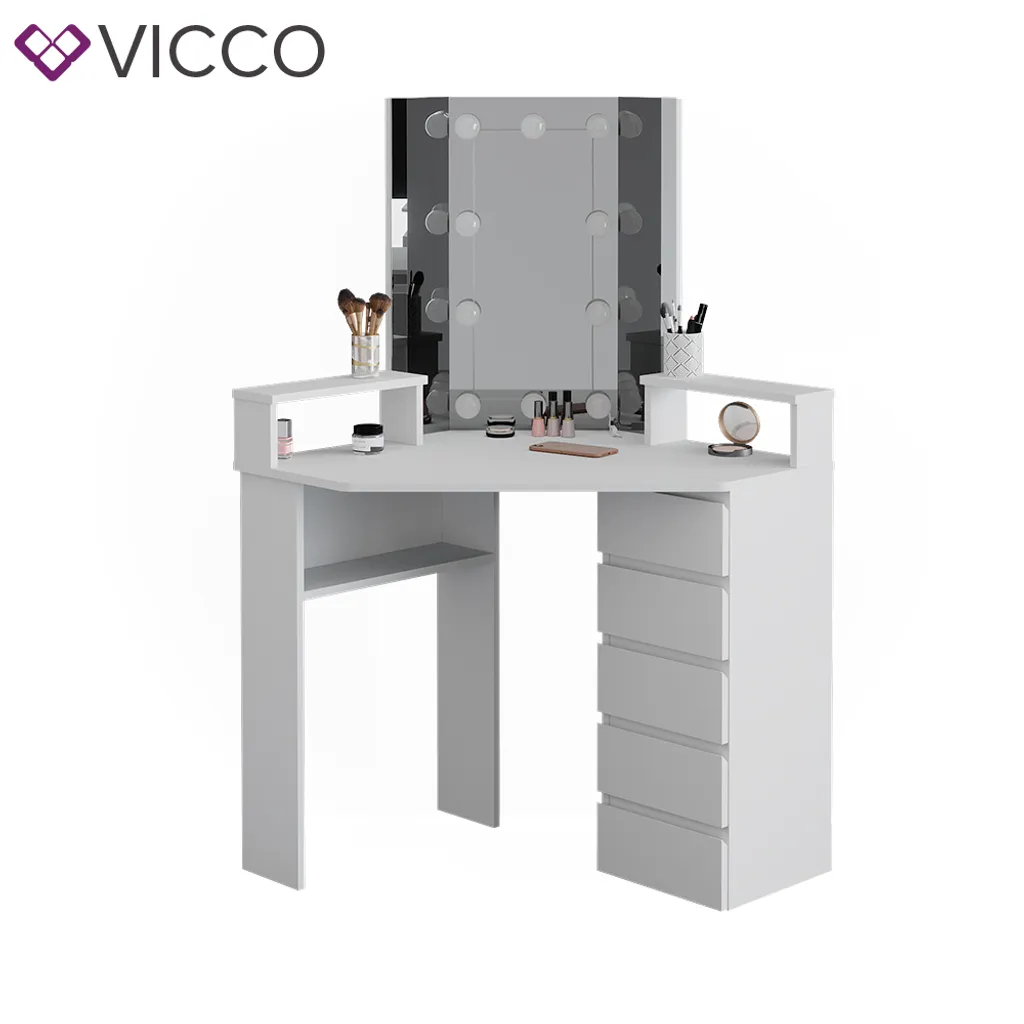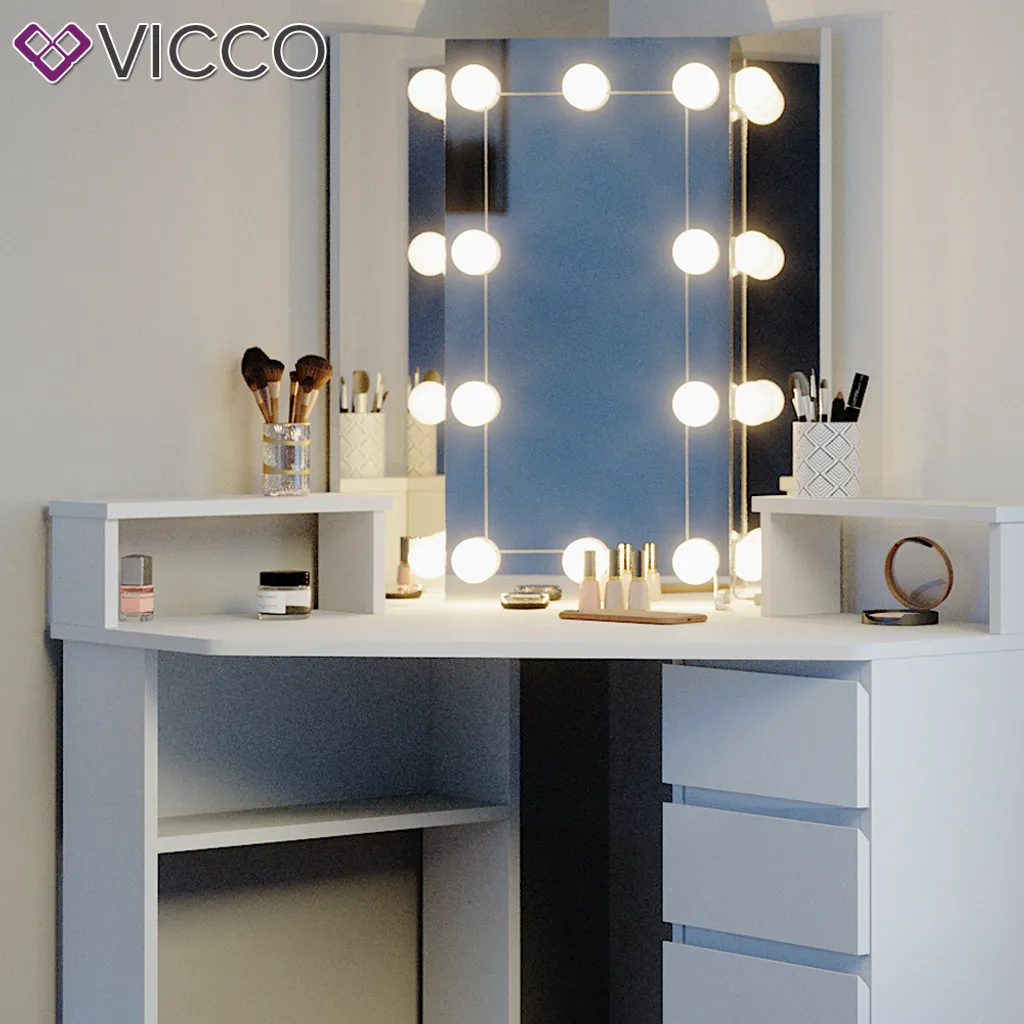 Unser hochwertiger Eck-Kosmetiktisch Tilda macht Ihre tägliche Schminkroutine zum Vergnügen. Die gradlinige Optik macht den Schminktisch zu einem stilsicheren Möbelstück, das jeden Raum aufwertet.