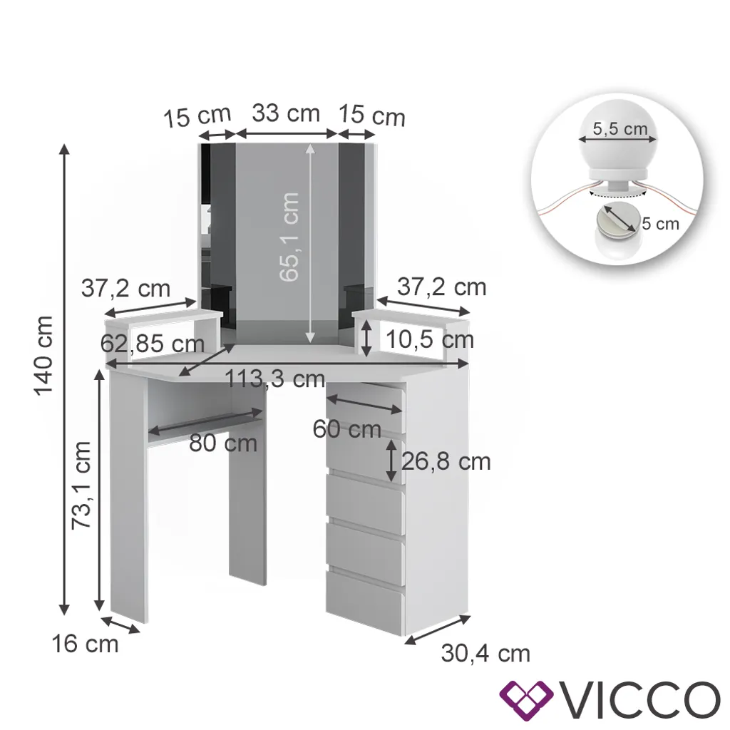 Schminktisch: 113,3 x 140 x 62,85 cm (BxHxT)