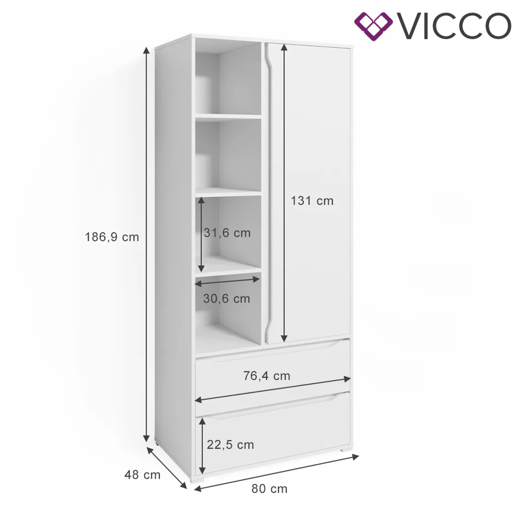 – Die Gesamtmaße betragen 80 x 189,9 x 48 cm (BxHxT).