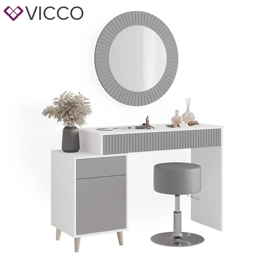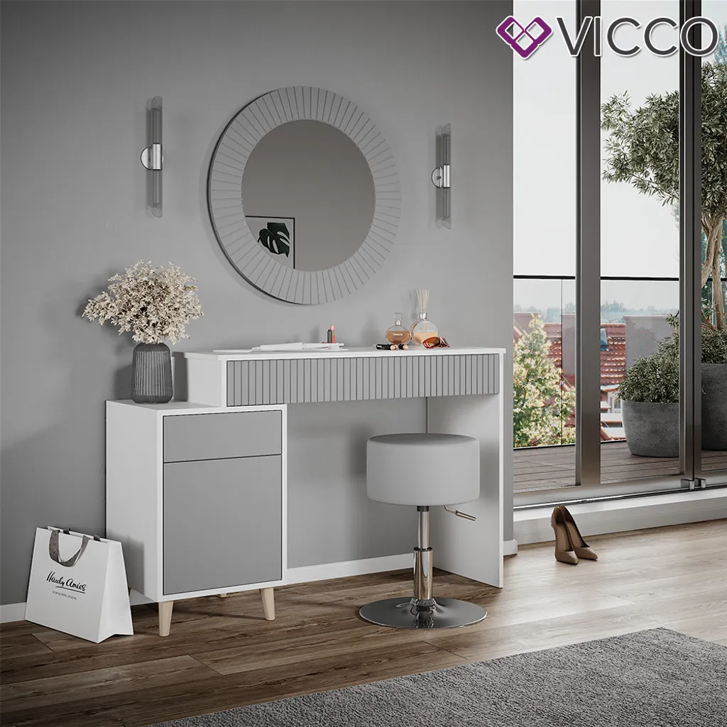 Die praktische Push-to-open-Funktion sorgt für eine leichtgängige Öffnung ohne Griffe. Die 2-Farben-Optik macht den Schminktisch zu einem optischen Highlight, das jeden Raum aufwertet. Der große, kreisrunde Spiegel wird Sie in einem noch glanzvolleren Licht erstrahlen lassen.