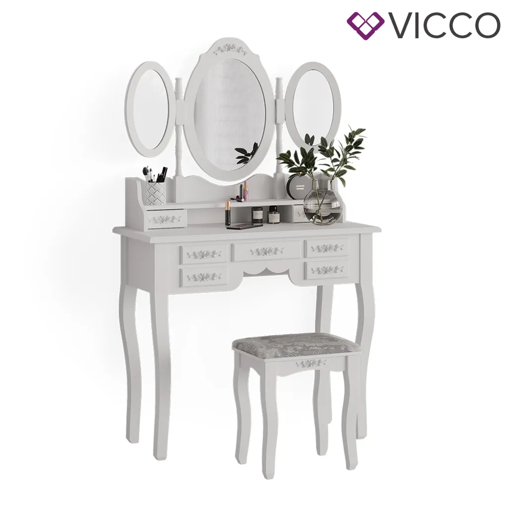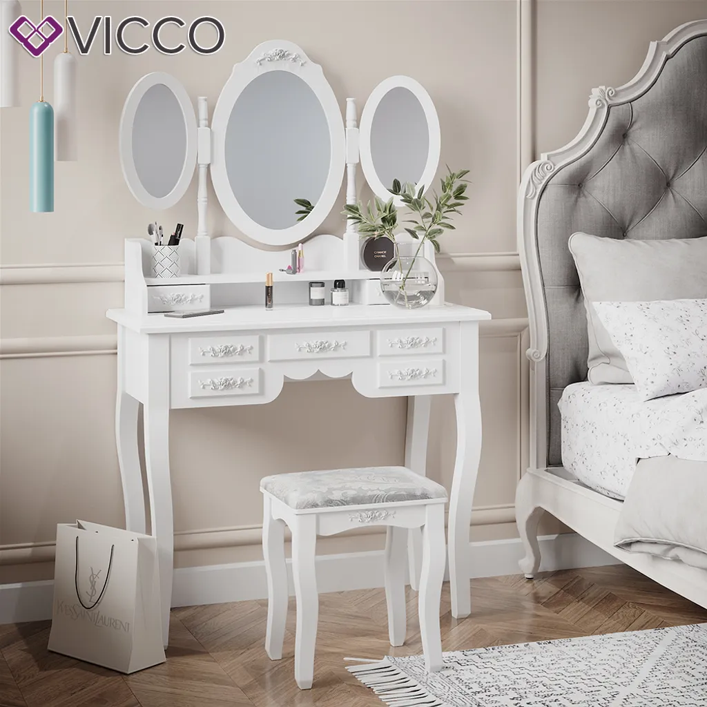 Mit diesem märchenhaften Kosmetiktisch wird die tägliche Schminkroutine zum Vergnügen. Die geschwungene Optik macht den Schminktisch zu einem besonderen Möbelstück für jedes Heim.