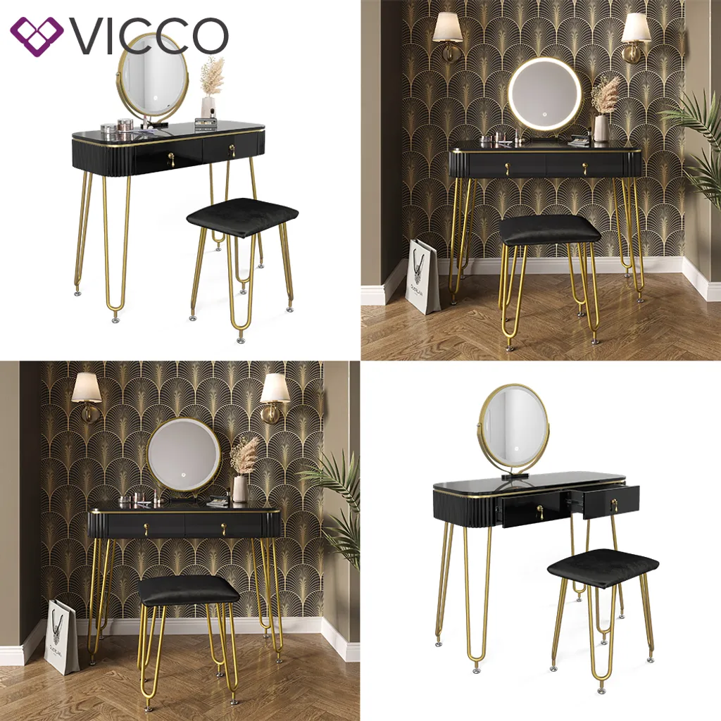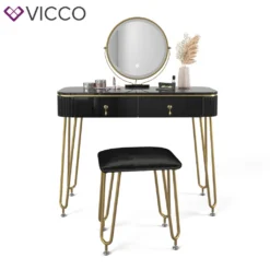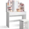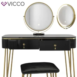 – Im Lieferumfang enthalten sind jeweils der Schminktisch inkl. LED-Spiegel und Hocker, eine bebilderte Montageanleitung und das benötigte Montagematerial.