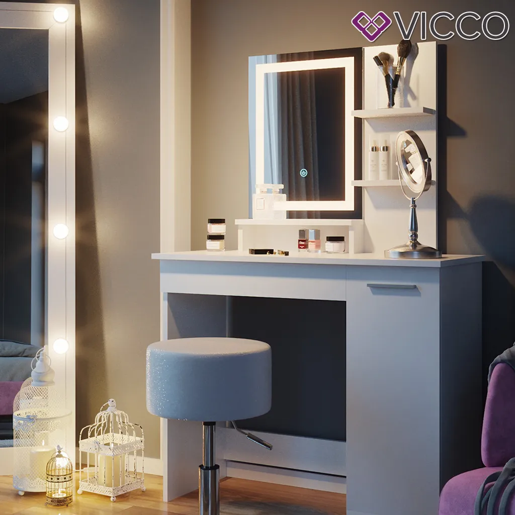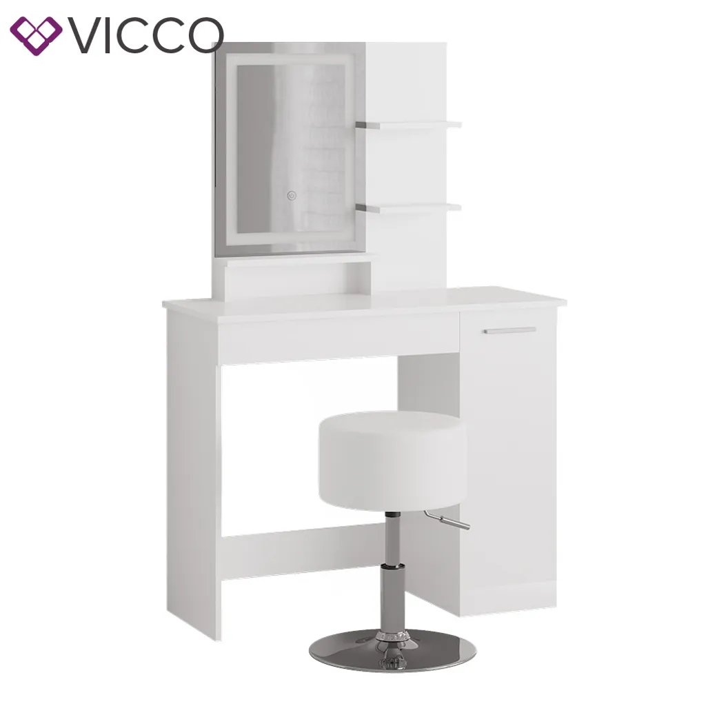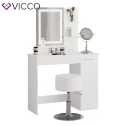 – Im Lieferumfang enthalten sind jeweils der Schminktisch inkl. LED-Spiegel, der Design-Hocker, eine bebilderte Montageanleitung und das benötigte Montagematerial.