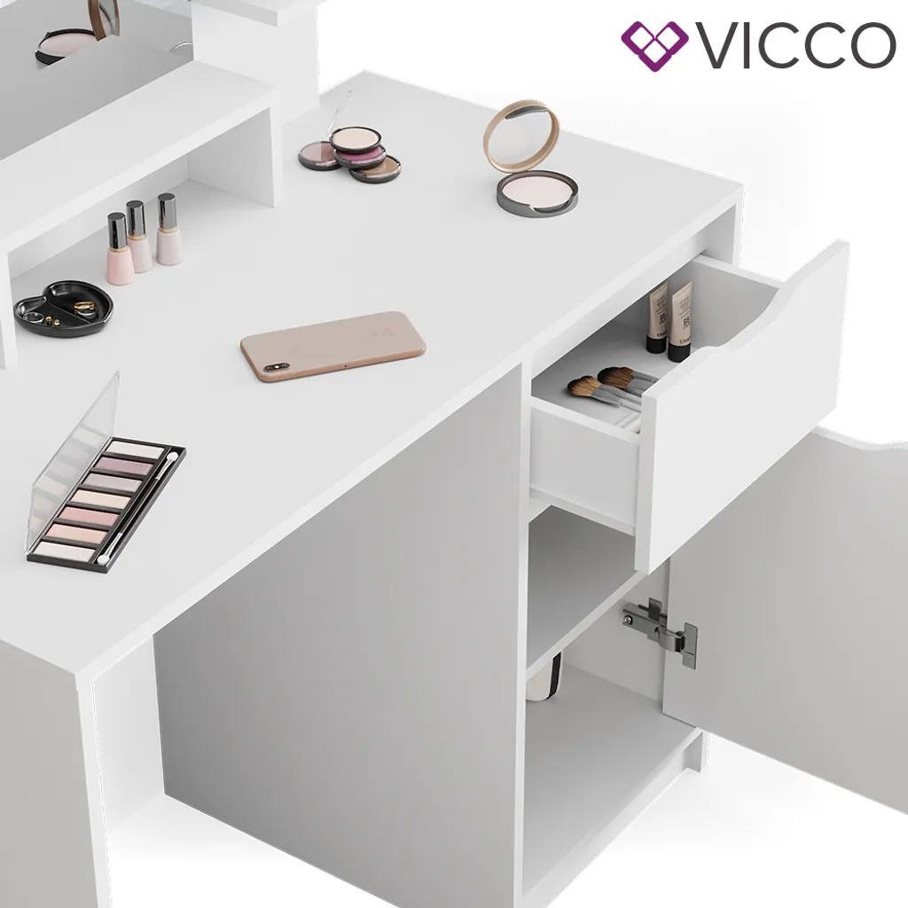 Sie werden edle Design in Verbindung mit den Abstellflächen und dem großen Spiegel nicht mehr missen wollen. Die zusätzlichen Schubladen bieten Ihnen genug Platz für all Ihre Beauty Artikel. Somit entfällt das zeitraubende Suchen nach dem einen bestimmten Lidschatten, Lippenstift oder ähnlichem.