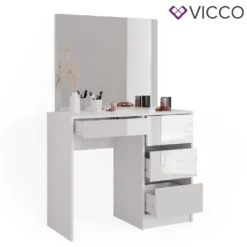 – Unser kleiner Schminktisch Sherry bietet durch die Melaminharzbeschichtung eine kratzfeste und pflegeleichte Oberfläche, um die hochglänzende Tischfläche optimal zu schützen.