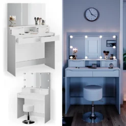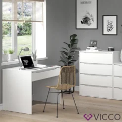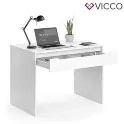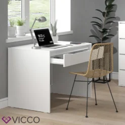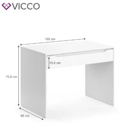 Dieser funktionale Schreibtisch präsentiert sich in einem modernen Design. Er bietet mit der großen Schublade viel Stauraum und Platz für Ihre Besitztümer. Hier gelingen Ihnen Ihre Hausarbeiten, Büroarbeit oder künstlerische Kreationen. Die Tischoberflächen bieten Platz für all Ihre Projekte. Die grifflosen Front und das schlichteNachbildung fügen sich bestens in Ihre Wohnwelt ein.