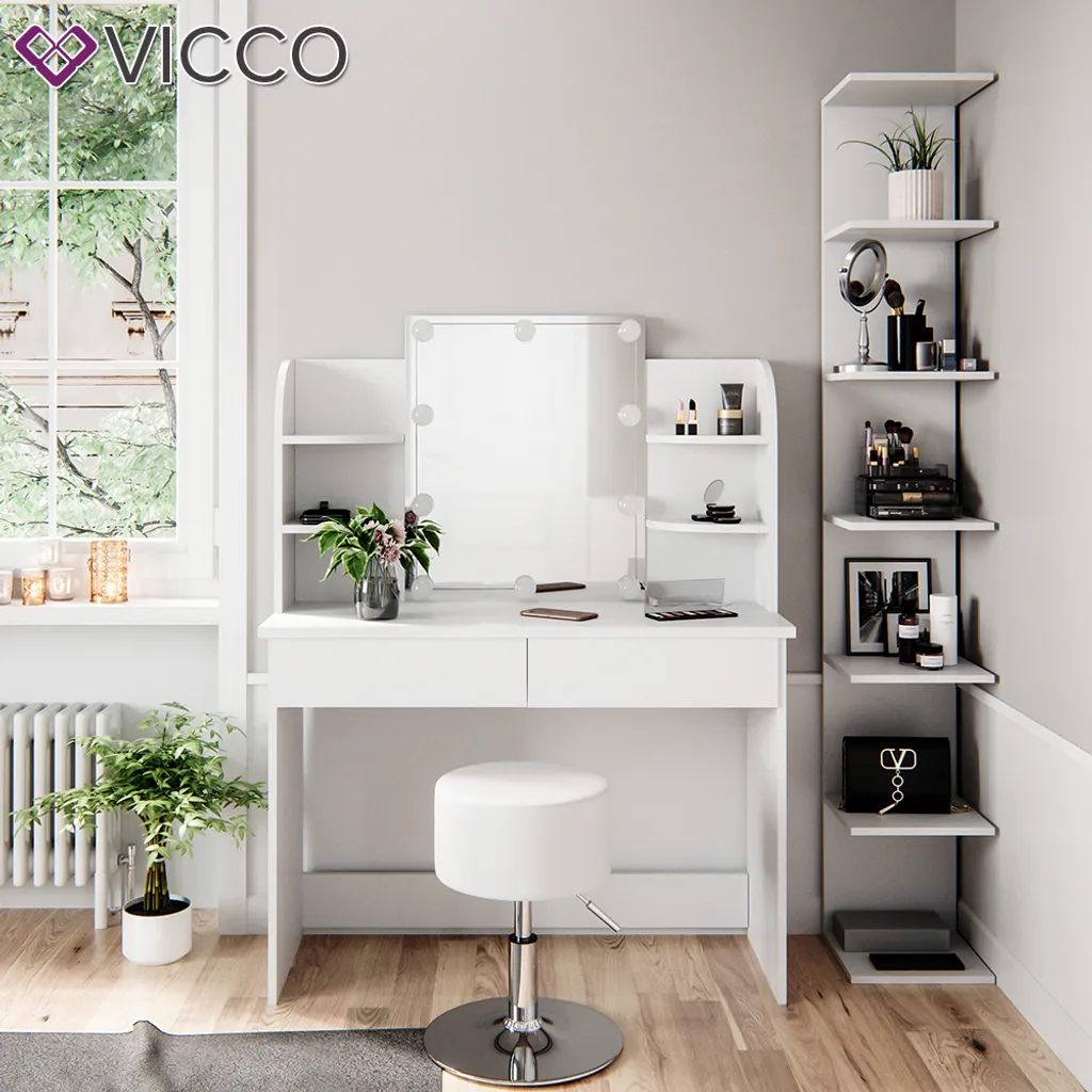 – Unser Regal ist in vierNachbildungen erhältlich und bildet einzeln oder gemeinsam mit unseren Schminktischen die perfekte Kombination mit Platz für all Ihre Schminkutensilien.