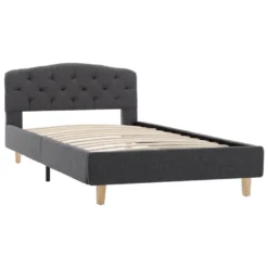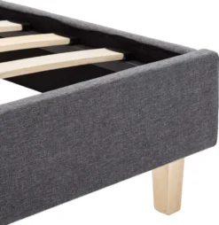 Dieser Bettrahmen zeichnet sich durch ein schlichtes und dennoch elegantes Design aus und verleiht Ihrem Schlafzimmerdekor einen Hauch von elegantem Charme. Dieser Bettrahmen aus Holz und MDF ist äußerst robust und langlebig. Die pulverbeschichteten Stahlbeine verleihen dem Bett zusätzliche Haltbarkeit. Darüber hinaus wirkt das mit strapazierfähigem Stoff bezogene Bett einladend und lässt sich leicht reinigen. Dieser Bettrahmen ist für eine Matratze von 100 x 200 cm geeignet.