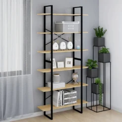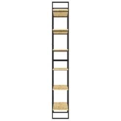 Dieses hohe Holzregal lässt sich perfekt in Ihre Inneneinrichtung integrieren und verleiht ihr einen industriellen Look.