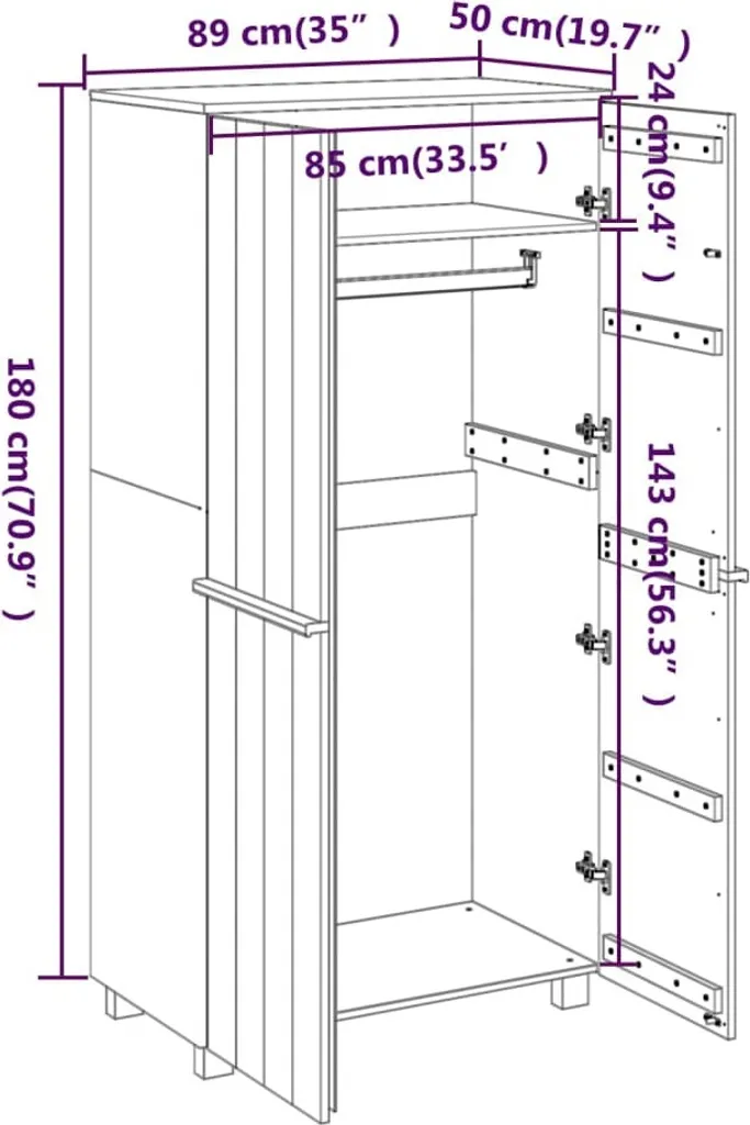 - Gesamtabmessungen: 89 x 50 x 180 cm (B x T x H)