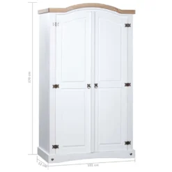 Der Dielenschrank hat ein schönes gewölbtes Oberteil und 2 Türen. Aus massivem Kiefernholz gefertigt, ist der Holzschrank stark und robust. Er bietet viel Platz für die Aufbewahrung Ihrer Kleidung auf dem oberen Einlegeboden und auf der Kleiderstange.