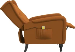 Der elektrische Massagesessel ist mit weichem Samt bezogen und dick gepolstert, wodurch er langlebig ist und eine bequeme Sitzposition bietet. Die Holzfüße sorgen für Stabilität. Dieser Sessel verfügt über 4 Massagepunkte für den Rücken und Gesäß. Mit der mitgelieferten Fernbedienung können Sie verschiedene Massageprogramme auswählen. Auf Knopfdruck lässt sich der Sitz auch erwärmen, um zusätzliche Entspannung zu bieten. Zudem können die Rückenlehne nach hinten und die Fußstütze nach oben verstellt werden, um eine komfortable Liegeposition zu ermöglichen. Dieser elektrische Massagesessel ist auch mit einer Seitentasche für die Fernbedienung ausgestattet.