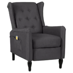 Der elektrische Massagesessel ist mit starkem Stoff bezogen und dick gepolstert, wodurch er langlebig ist und eine bequeme Sitzposition bietet. Die Füße aus Eukalyptus-Massivholz sorgen für hohe Stabilität. Dieser Sessel verfügt über 4 Massagepunkte für Rücken und Gesäß. Mit der mitgelieferten Fernbedienung kannst du die verschiedenen Massageprogramme auswählen. Auf Knopfdruck lässt sich der Sitz auch erwärmen, um zusätzliche Entspannung zu bieten. Dieser elektrische Massagesessel ist auch mit einer Seitentasche ausgestattet, in der die Fernbedienung verstaut werden kann.