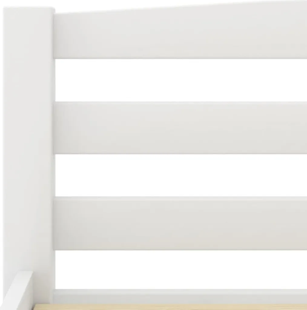 Das Bett hat eine solide Konstruktion aus massivem Kiefernholz, was es äußerst robust und langlebig macht. Die stabilen Sperrholzlatten bieten zudem den nötigen Halt und Komfort.