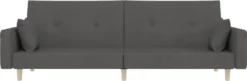 Der Holzrahmen trägt zur Robustheit des Schlafsofas bei, während die dicke Polsterung aus Schaumstoff zusätzlichen Komfort bietet. Dieses Schlafsofa lässt sich schnell und einfach von einem Sofa in ein Bett und wieder zurück umwandeln. Sie können die zwei separaten Rückenlehnen teilweise oder ganz nach unten schieben, um den idealen Platz für ein Nickerchen oder ein Doppelbett zu schaffen.