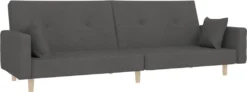 Der Holzrahmen trägt zur Robustheit des Schlafsofas bei, während die dicke Polsterung aus Schaumstoff zusätzlichen Komfort bietet. Dieses Schlafsofa lässt sich schnell und einfach von einem Sofa in ein Bett und wieder zurück umwandeln. Sie können die zwei separaten Rückenlehnen teilweise oder ganz nach unten schieben, um den idealen Platz für ein Nickerchen oder ein Doppelbett zu schaffen.