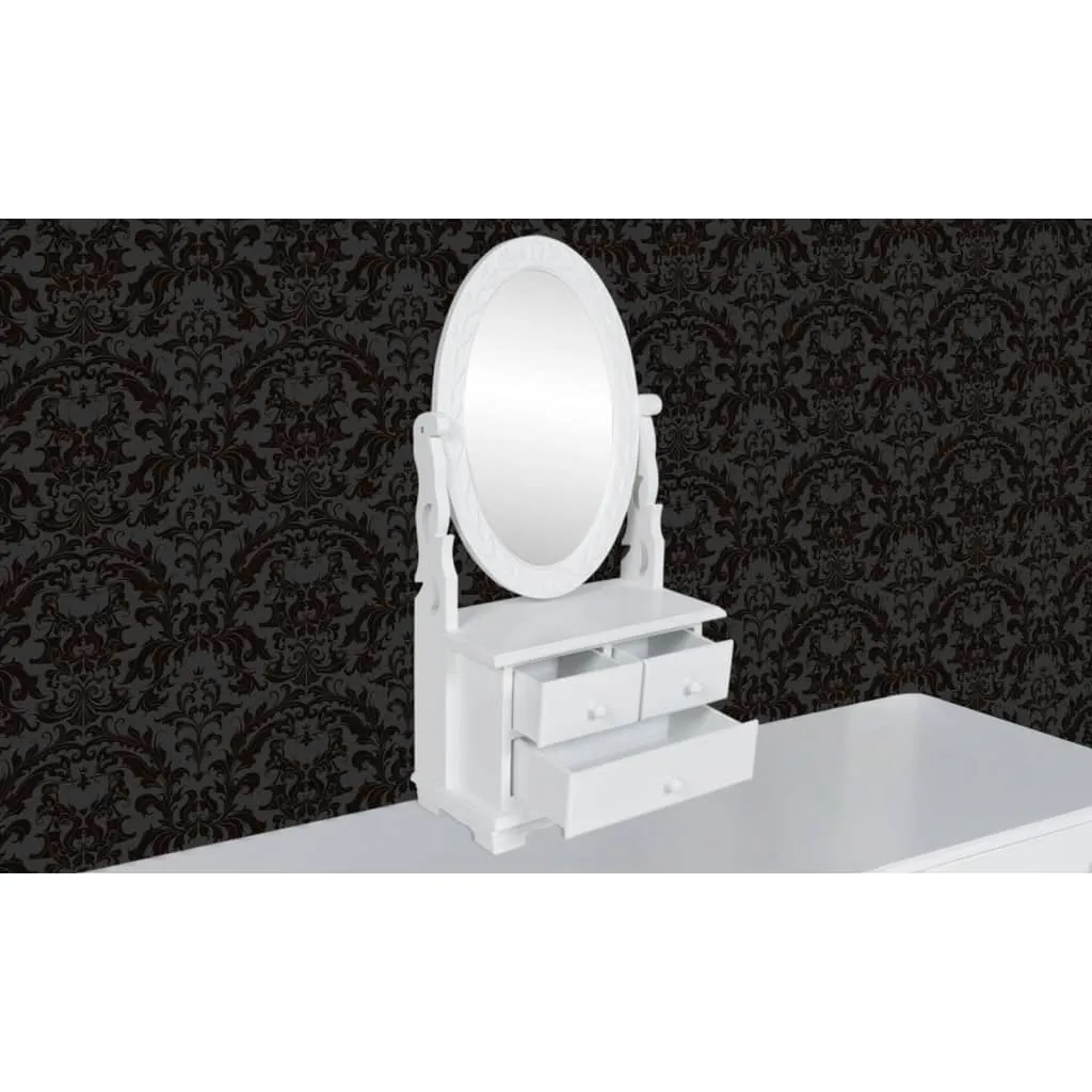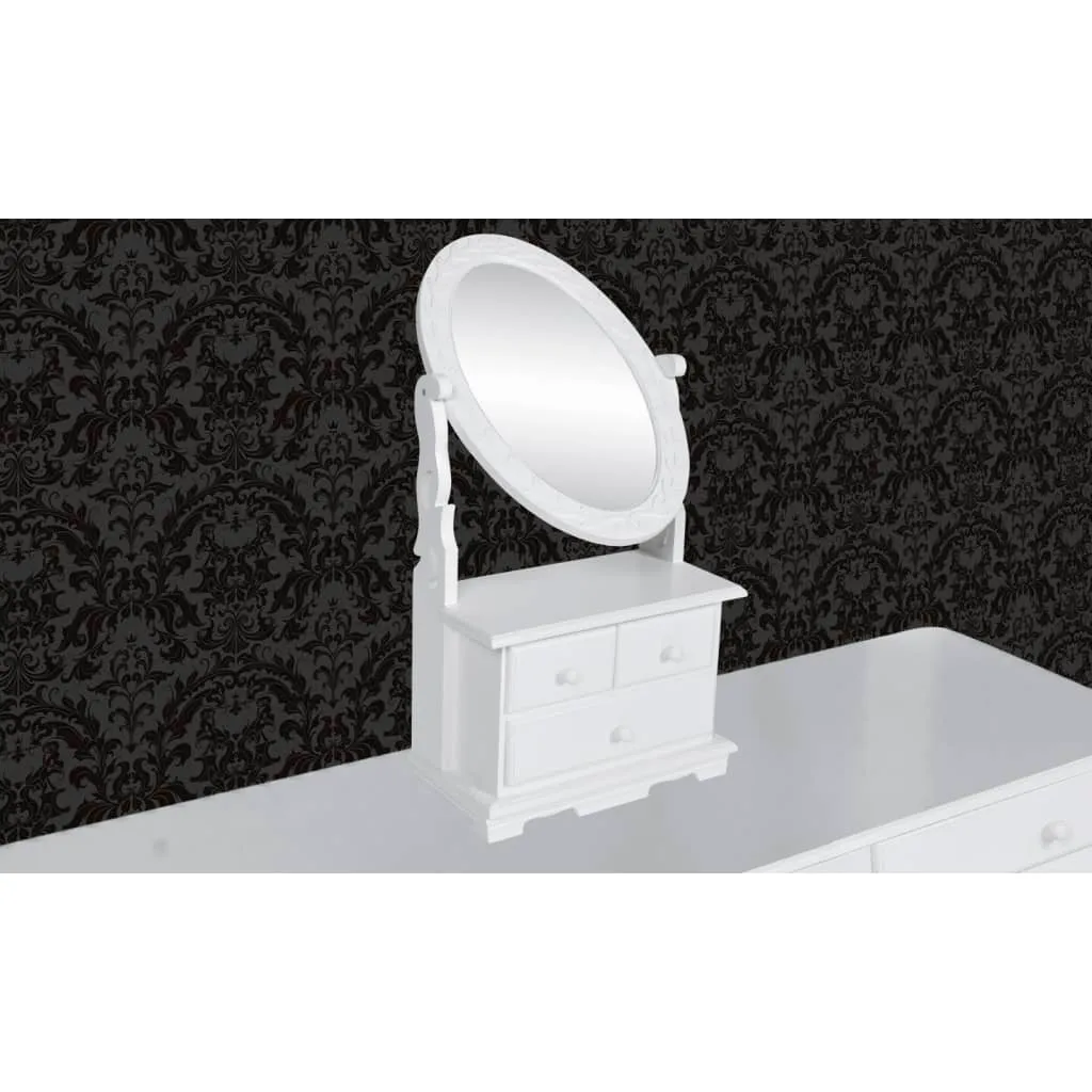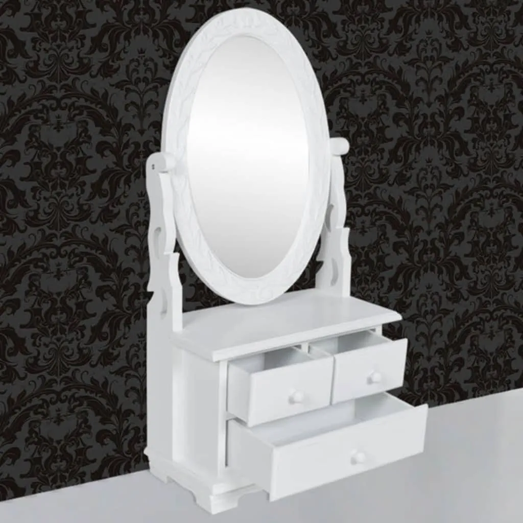 In der Mitte befindet sich ein stilvoller ovaler Schwenkspiegel. Das untere Teil bietet zwei kleine und eine groĂźe ausziehbare Schublade, in der Sie Ihre Wertsachen aufbewahren können. Die Schubladen können zur Reinigung leicht entfernt werden.Â