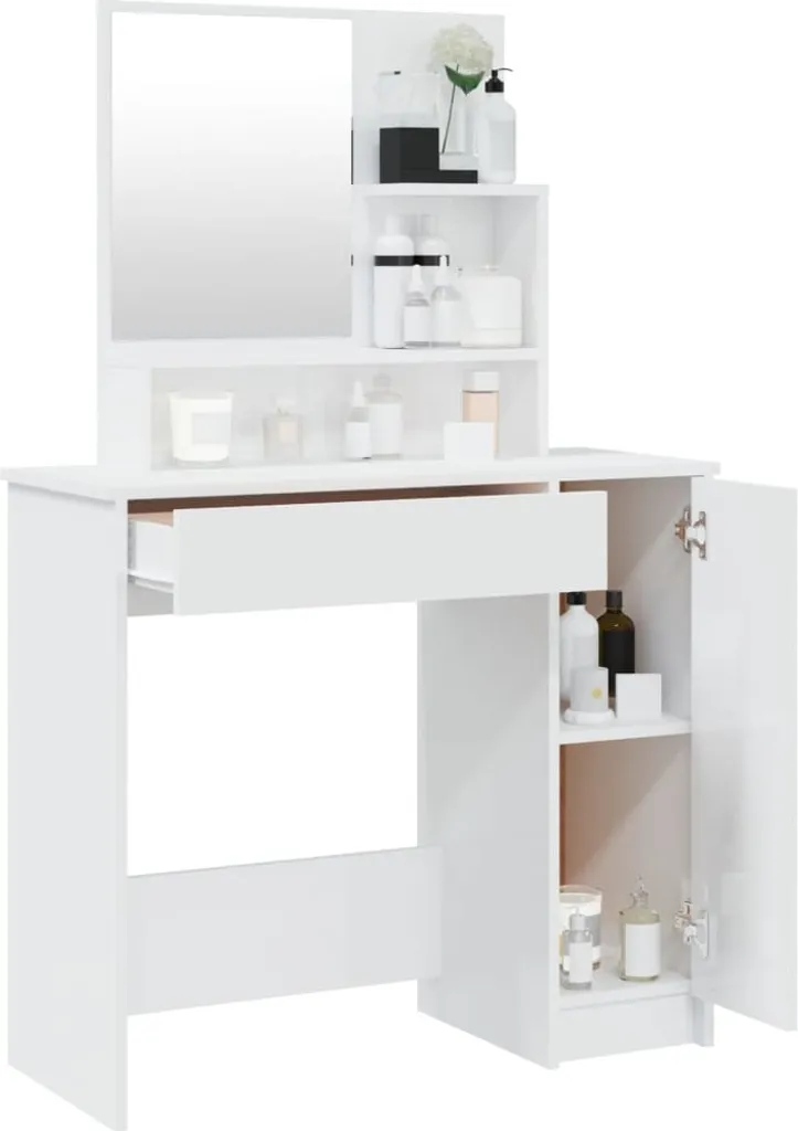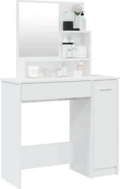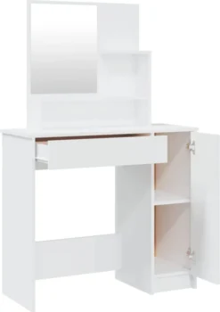 - Praktische Tür: Sorge für Ordnung in deinem Zimmer, indem du wichtige Kleinigkeiten in diesem Schminktisch hinter der Tür versteckst.