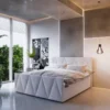 Der pulverbeschichtete Stahlrahmen und die Sperrholzlatten tragen zur Robustheit und Langlebigkeit des Bettes bei. Das mit strapazierfähigem Stoff gepolsterte Bett wirkt einladend und ist pflegeleicht. Dieser Artikel ist leicht zu montieren. Dieses Schlafzimmermöbel ist für eine Matratze von 140×200 cm vorgesehen.