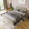 Dieses Polsterbett verwandelt den ungenutzten Raum unter der Matratze in einen Stauraum mit viel Platz zur Aufbewahrung von Kleidung, Laken, Decken usw. Der hydraulische Gashebemechanismus macht das Anheben der Matratze zum Kinderspiel. Der Lattenrost steht nach dem Anheben aufrecht, sodass Sie beide Hände frei haben, um darunter liegende Gegenstände zu entfernen oder zu verstauen.