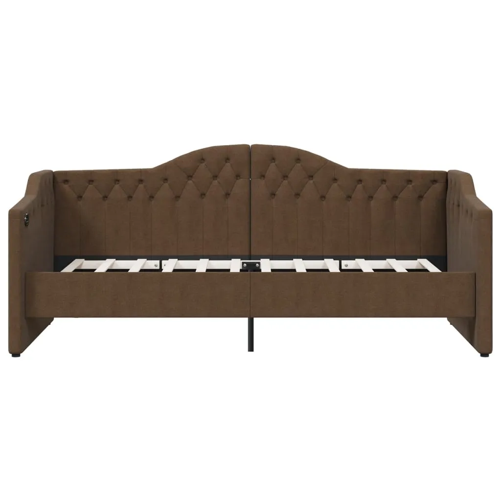 Sie können dieses Möbelstück tagsüber problemlos in ein Sofa und nachts in ein bequemes Bett verwandeln. Das Tagesbettgestell maximiert die verfügbare Grundfläche und bietet gleichzeitig Schlafplatz. Dies macht ihn zur idealen Wahl für Personen mit begrenztem Wohnraum. Das gesamte Bettgestell hat eine robuste Metallkonstruktion, die ihn sehr langlebig und für den täglichen Gebrauch geeignet macht. Für noch mehr Komfort sorgt der USB-Ausgang am Rahmen.