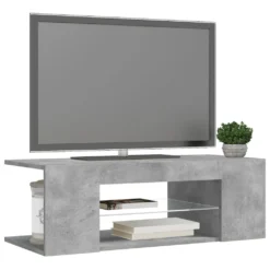 Die robuste Konstruktion dieses HiFi-Schranks macht ihn sehr langlebig. Es bietet reichlich Platz, um Ihren DVD-Player, Ihre Spielekonsole, Ihr Streaming-Gerät und Ihre Medienträger ordentlich zu organisieren. Dieser TV-Ständer verfügt über RGB-LED-Leuchten, die über verschiedene Menüs verfügen, um die Farbe der Lichter zu ändern und die Farbe automatisch unterschiedlich anpassen zu lassen. Die LED-Leuchten unterstreichen den modernen Look und tragen zum trendigen Feeling bei. Außerdem lässt sich dieser TV-Schrank leicht mit einem feuchten Tuch reinigen.