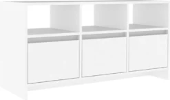 Das Lowboard besitzt eine stabile und langlebige Konstruktion. Mit 3 Schubladen und 3 Fächern ausgestattet, bietet der TV-Schrank den idealen Platz, um DVDs, Spielkonsolen, Zeitschriften und andere Sachen ordentlich aufzubewahren. Darüber hinaus lässt er sich mit einem feuchten Tuch ganz einfach reinigen.
