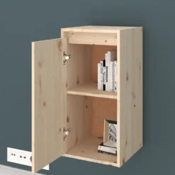 Aus massivem Kiefernholz gefertigt, ist der Hängeschrank robust, stabil und auf eine lange Lebensdauer ausgelegt. Der Wandschrank bietet auch den idealen Platz für Sachen wie Bücher, Sammlerstücke, Ornamente und mehr. Er verwandelt eine leere Wand sofort in ein Designelement. Darüber hinaus lässt sich der Schwebeschrank mit einem feucht Tuch leicht reinigen.