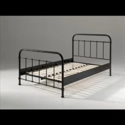 Sehr schönes Metallbett aus der Serie New York mit einer Liegefläche von 120 x 200 cm. Die hochwertige Oberfläche ist Pulverbeschichtet in der Farbe Schwarz und bietet eine schöne Farbtiefe. Der Rohrrahmen ist 38 mm stark und verleiht dem Bett eine hohe Standfestigkeit und Stabilität. Das Kopf- und Fußteil mit den waagerecht und senkrecht verlaufenden Streben ist bereits montiert. Kopfteilhöhe ca. 110 cm, Fußteilhöhe ca. 83 cm. Die breiten Bettseiten (15 cm hoch) ermöglichen eine Einlegetiefe von 11 cm für die Matratze. Die Bodenfreiheit ist ca. 20 cm. Der Lattenrost mit 14 Leisten gehört bereits zum Lieferumfang dazu. Aufgrund der stabilen Konstruktion ist das Bett bis 100 kg belastbar. Die Bettseiten und Federleisten werden einfach zwischen zwischen das Kopf- und Fußteil montiert. Die Ware ist zerlegt, zur einfachen Selbstmontage. Eine Aufbauanleitung ist beigefügt. Die Stellfläche ist ca.: B: 125 x H: 110 x T: 210 cm.