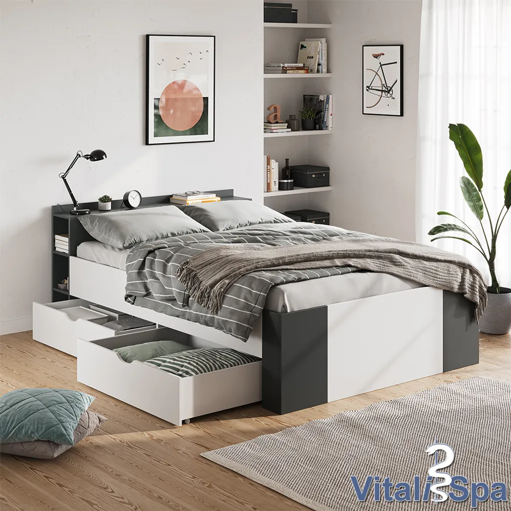 Unser Bett Pulsar ist ein echtes Stauraumwunder in moderner Optik. Das praktische Kopfteil mit vielen Ablageflächen bietet Ihnen die Möglichkeit Deko, Pflanzen und weitere Kleinigkeiten darin zu platzieren.