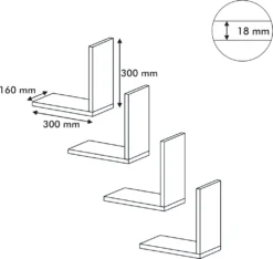 – Regal (HxBxT): je 30 x 30 x 16 cm