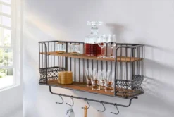 - Tolles Regal im Industrie-Look mit 2 Einlegeböden aus Holz und 5 praktischen Haken