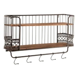 - Tolles Regal im Industrie-Look mit 2 Einlegeböden aus Holz und 5 praktischen Haken