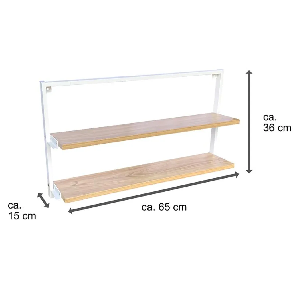 - Abmessungen: 2 Regalböden: ca. 65 × 36 × 15 cm (B×H×T)