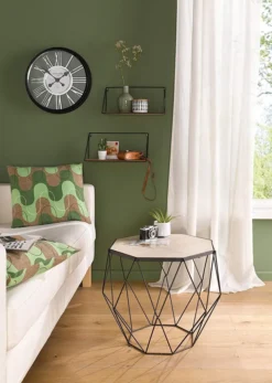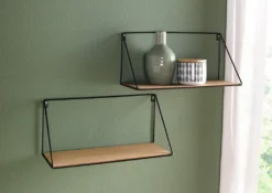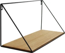 modernes, schlichtes Design, mattschwarz lackiertes Metall, MDF-Holzplatte mit natürlicher Maserung