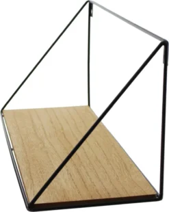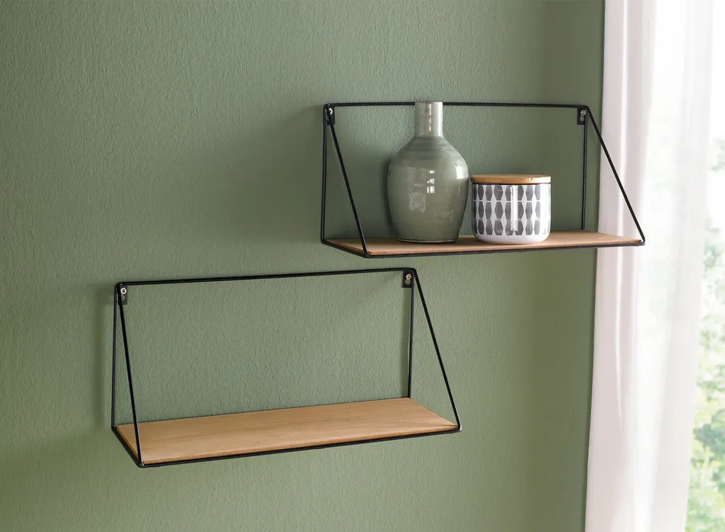 – Wandregal mit mattschwarzen Metallstreben und natürlicher Holzoptik