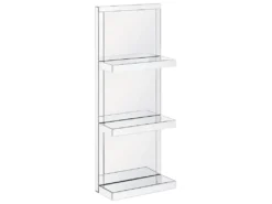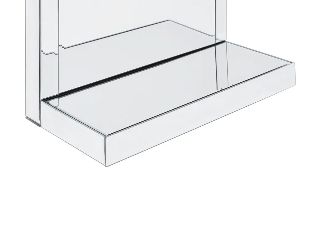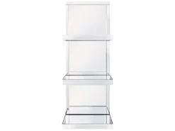 Modernes Glasregal zum Aufhängen mit 3 praktischen Fächern. Dieses Regal hat eine glamouröse Erscheinung, die es seiner einzigartigen Konstruktion aus klarem Spiegelglas verdankt. Die fein geschliffenen Kanten lassen einen schönen, flüssigen Übergang zwischen den Glasflächen entstehen. An der Rückwand befinden sich praktische Halter, so kann man das Wandregal schnell und einfach an der Wand montieren. Die zuverlässigen, stabilen Ablagen erweitern den Stauraum nicht nur im Bad sondern auch im Schlaf- oder Wohnzimmer.