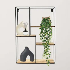 Dieses rechteckige Wandregal verfügt über 4 Ablagemöglichkeiten. Hier finden die kleinen Dinge des Alltags ihren Platz.