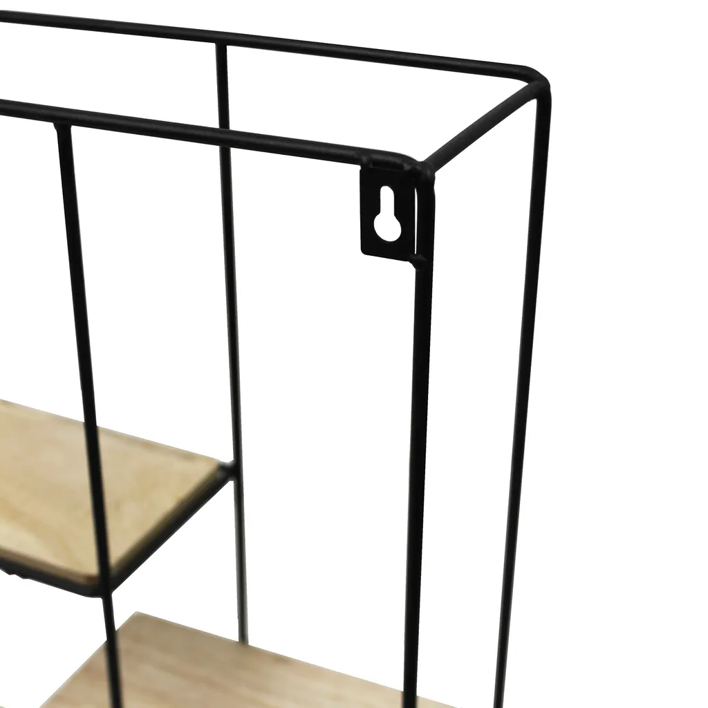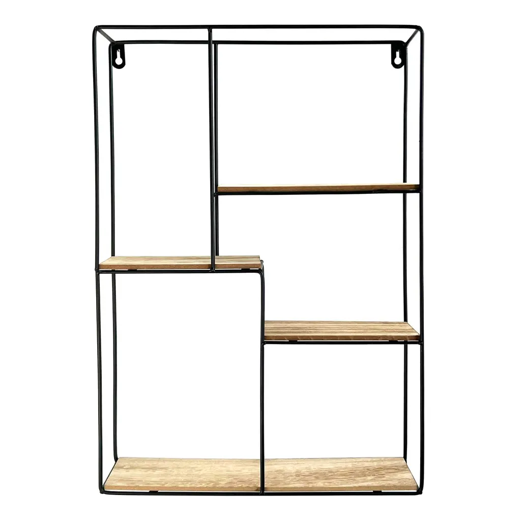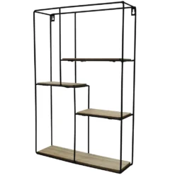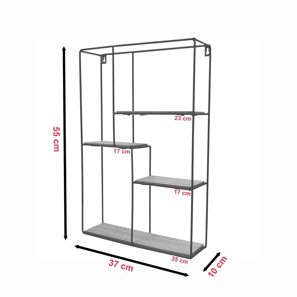 DETAILS Gesamtgröße (BxTxH): ca. 37x10x55cm / Größe der Ebenen (BxT): ca. 23/17/17/35x9cm / Material: Metall, Holz/MDF / Farbe: Schwarz/Natur / Gewicht: ca. 0,7kg
