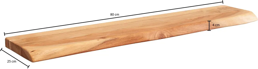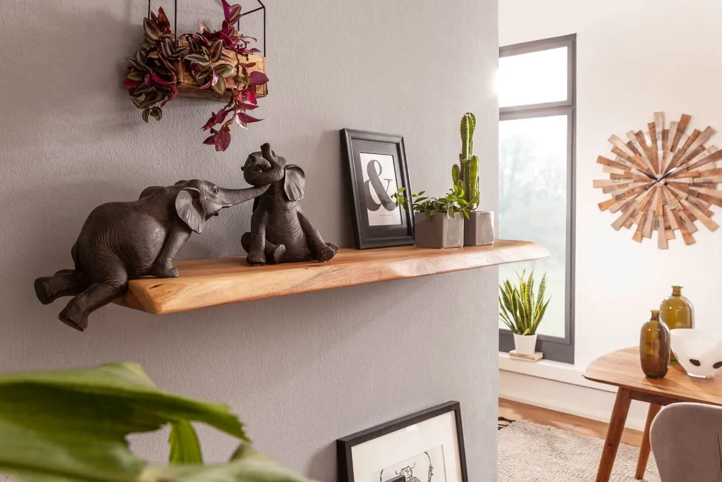 - Keine sichtbaren Halterungen – Holzregal scheint an der Wand zu schweben