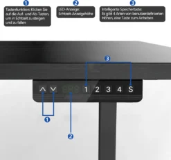 Intelligente Sicherheit:Das Bedienfeld verfuegt ueber einen LED-Bildschirm und die intelligenten Speichertasten speichert 4 benutzerdefinierten Hoehen, mit einmal Klicken erreichen Sie die gewuenschte Hoehe.Intelligente Antikollisions-Rueckprallfunktion, wenn Hindernisse beim Abheben/Senken erkannt werden, faehrt der Schreibtisch ca. 3 cm in die entgegengesetzte Richtung. Mit Schutz vor Stromschlaege, vermeiden Sie versteckte Gefahren.