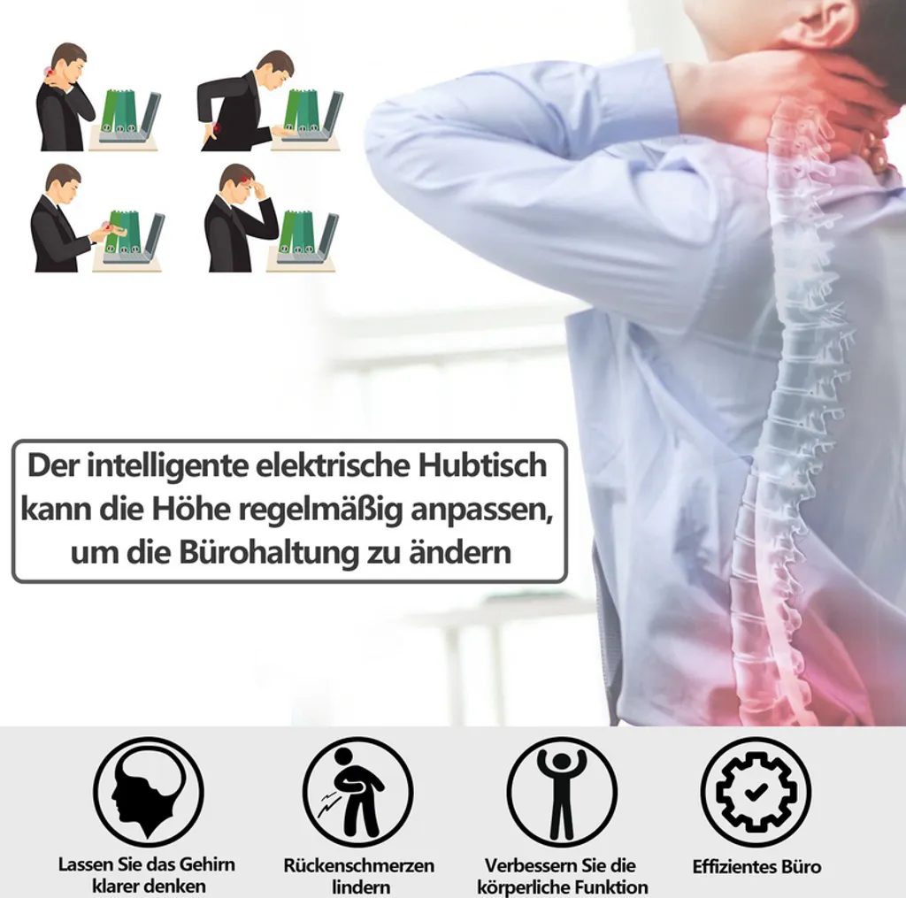 Gesund und praktisch:Der hoehenverstellbare Schreibtisch kann jederzeit die Koerperhaltung (Sitzposition, Stehen) aendern, die nachteiligen Auswirkungen von Bewegungsmangel auf Ruecken, Schulter und Nacken wirksam verbessern, Ruecken- und Nackenschmerzen lindern, die koerperliche Funktion verbessern und den Koerper gesuender machen. Es eignet sich fuer Buero und Studium und Arbeit zu Hause.