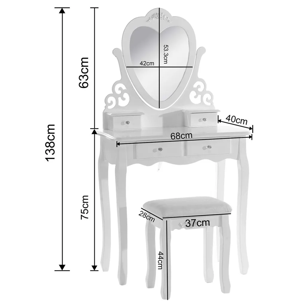 - Schminktisch aus hochwertigem MDF(Klasse E1) und Kiefernholz, sehr stabil und elegant