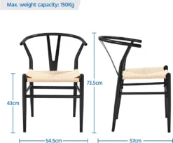 Der Y-Stuhl, auch bekannt als Querlenkerstuhl, ist ein klassisches und praktisches Möbelstück. Durch die Leichtigkeit des Designs fügt sich dieser Stuhl harmonisch in eine Vielzahl von Wohnstilen ein. Sie können ihn im Esszimmer, im Wohnzimmer und im Studio verwenden. Der geflochtene Sitz mit seiner geschwungenen Rückenlehne und den Armlehnen sorgt für Komfort. Robuste Materialien ermöglichen die langfristige Anwendung. Bei Nichtgebrauch lassen sich die Stühle auch platzsparend stapeln.