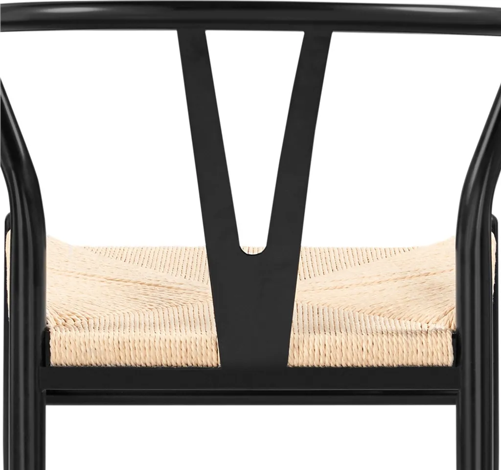 Stilvolles Möbel-Set – Die Kombination aus dem Papierseilgeflecht und dem Metallrahmen verleiht diesem Stuhl-Set einen einzigartigen Charme. Mit den geschwungenen Hinterbeinen und der Y-Rückenlehne sorgt der Stuhl für eine anziehende Leichtigkeit.